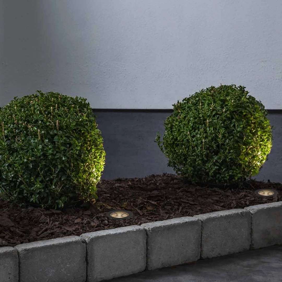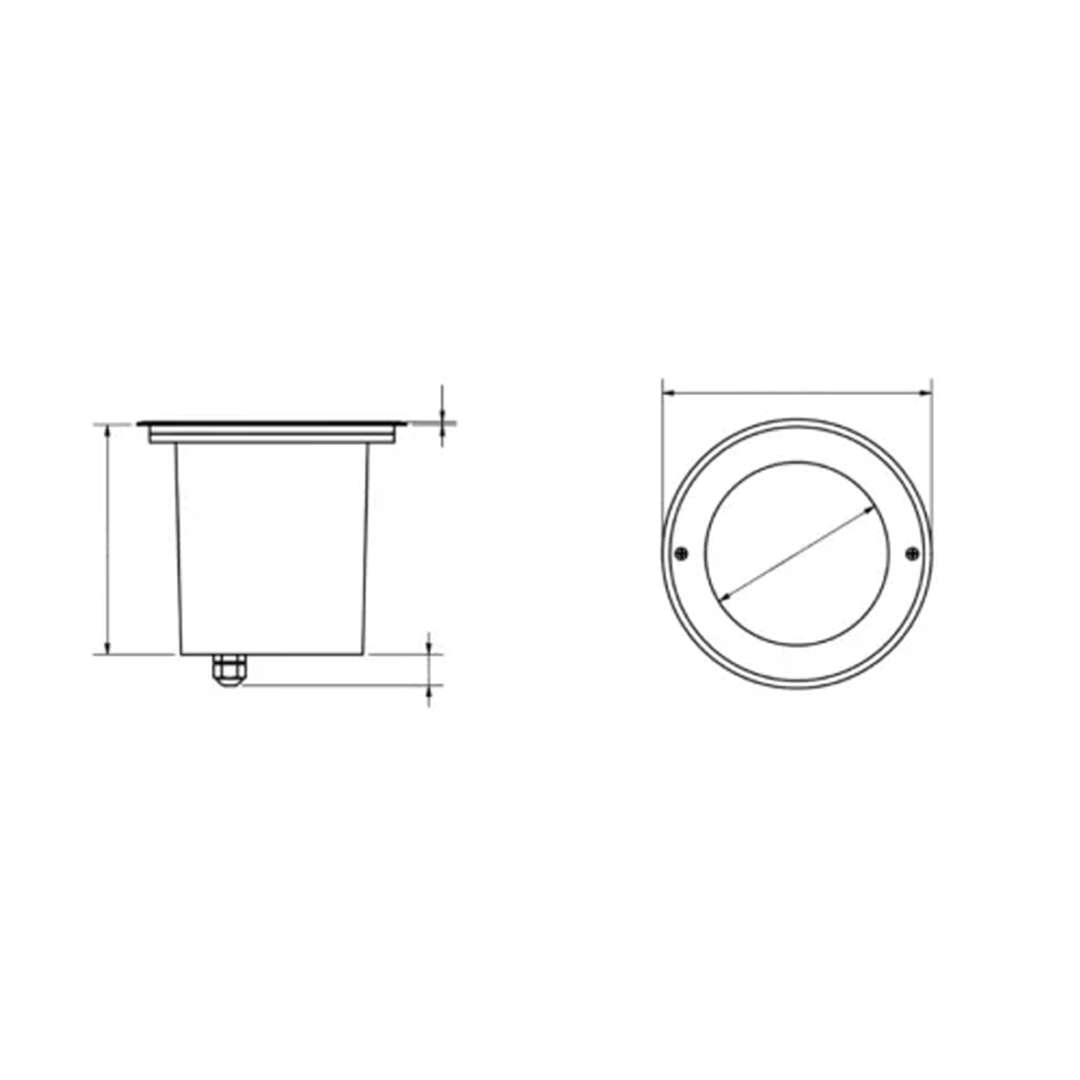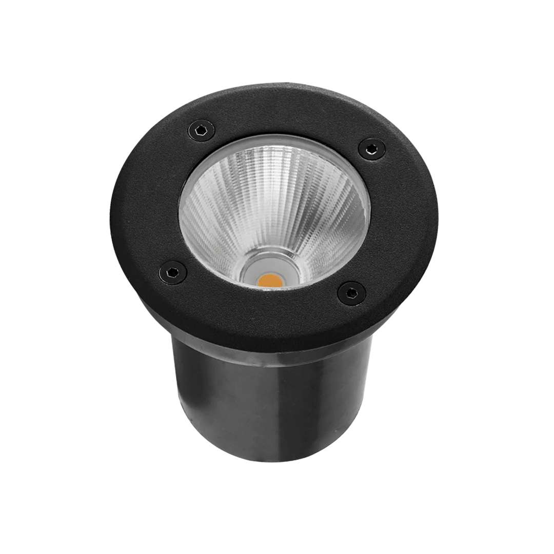 Luminária embutido de solo corpo em alumínio com pintura eletrostática. Própria para ambientes externos resistente a intempéries e à ação de maresia.