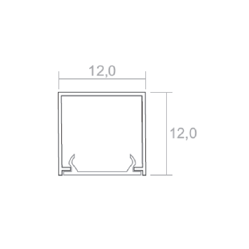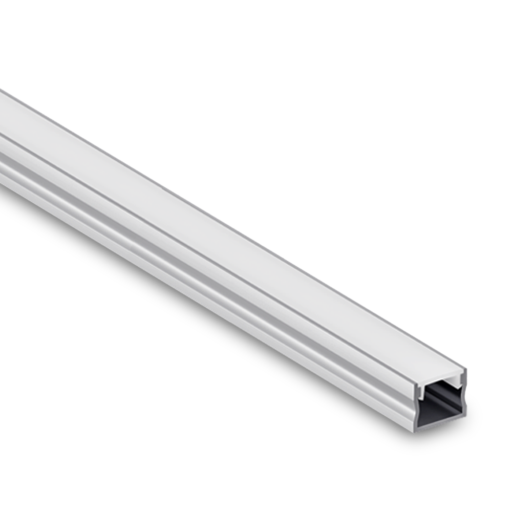 Perfil LED de sobrepor com corpo em alumínio e pintura eletrostática, difusor translúcido.