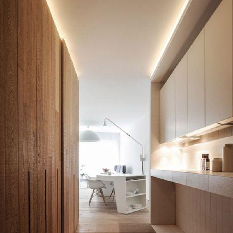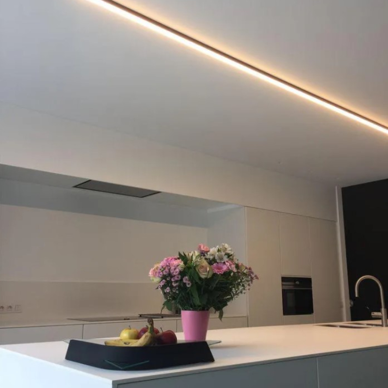 Perfil LED de sobrepor em alumínio com pintura eletrostática e difusor alto translúcido.