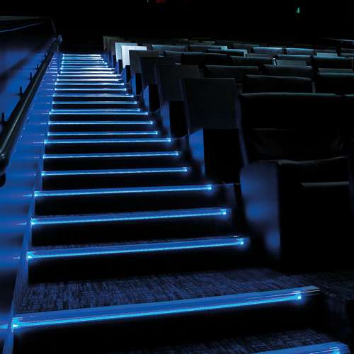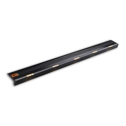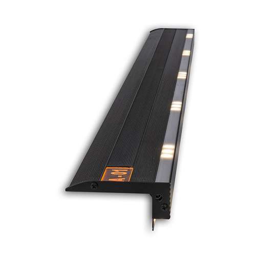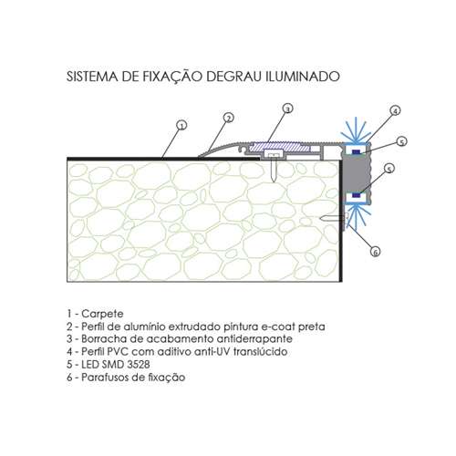 Perfil linear de sobrepor para uso em degrau, corpo em alumínio com pintura eletrostática e difusor translúcido.